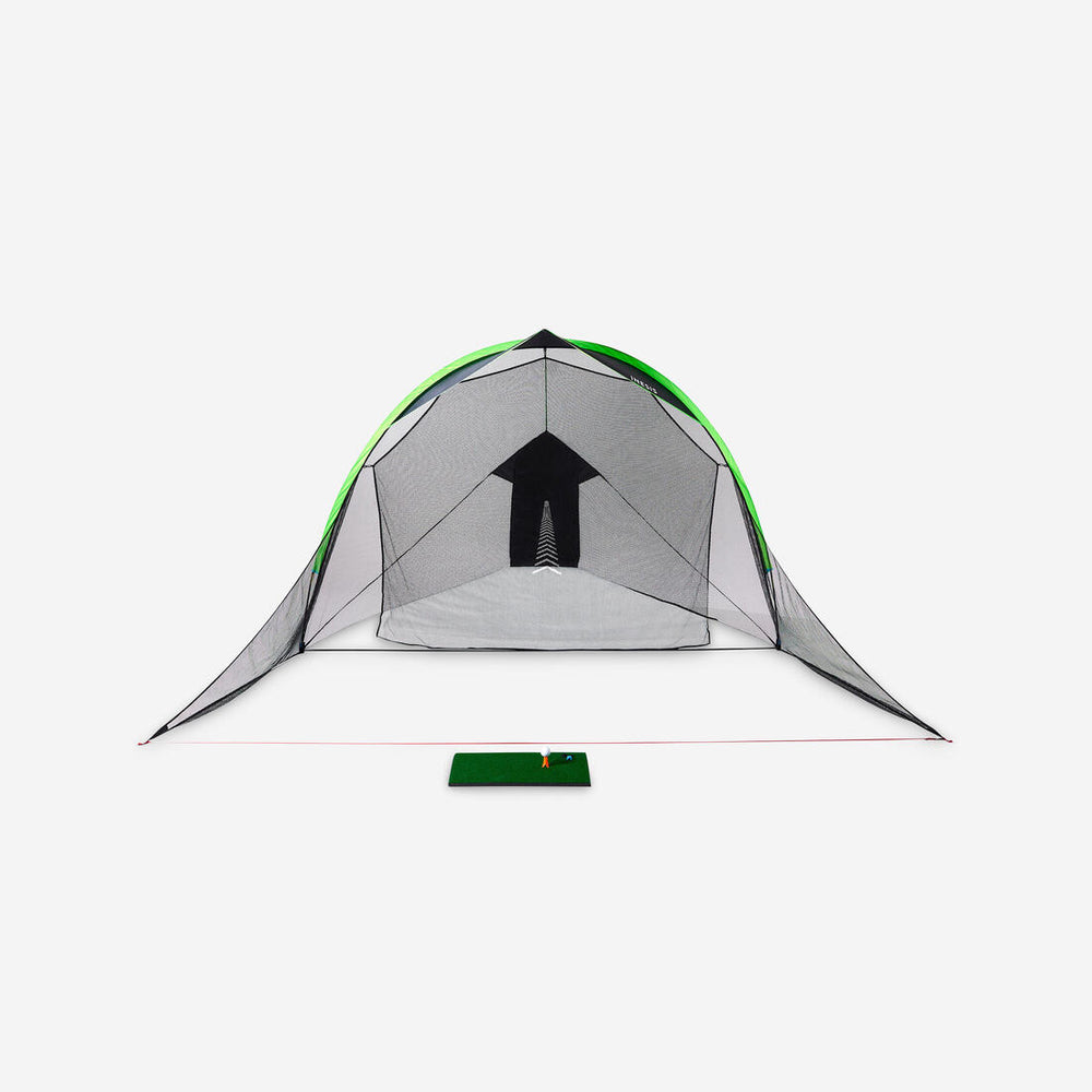 Nuestra red de práctica te permite efectuar multitud de golpes con auténticas balas de golf con absoluta seguridad. La tira central te permite saber si el golpe está centrado. El ruido de la pelota es más fuerte si tocas la tira y más suave si tocas la red.