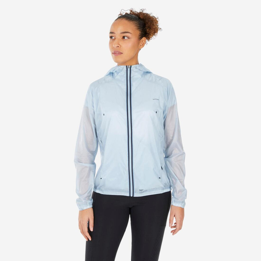 Esta chamarra de senderismo rompevientos protegerá a las senderistas nivel perfeccionamiento de vientos moderados cuando practiquen senderismo con clima seco.