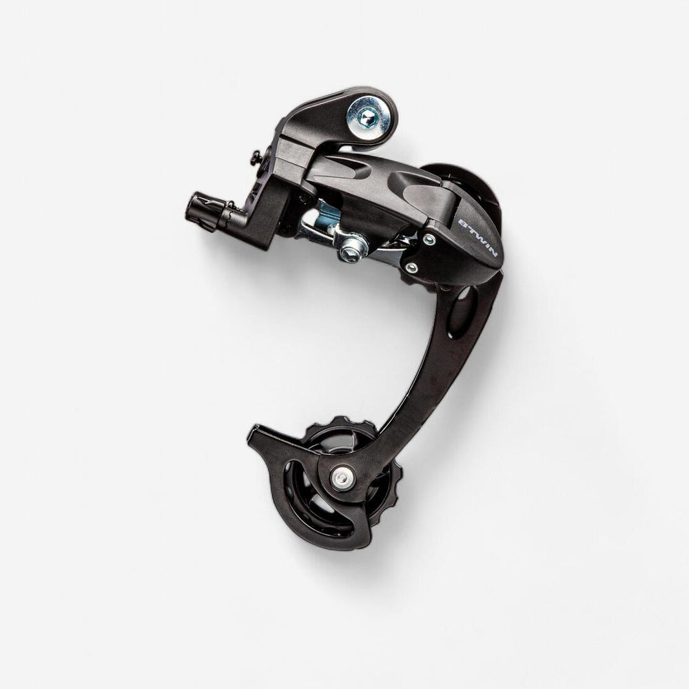 Cambio de caja larga compatible con las transmisiones de las bicicletas Shimano y Btwin de 7, 8 y 9 vel. con un paso de velocidades fluido y preciso.