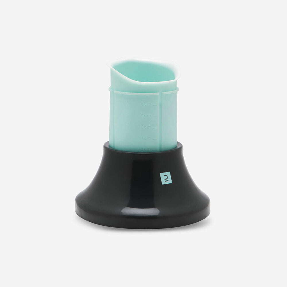 Este tee polivalente tiene una base lastrada, para ofrecer mayor estabilidad. La altura se ajusta fácilmente. Su gradación permite identificar fácilmente las marcas al colocar el balón.