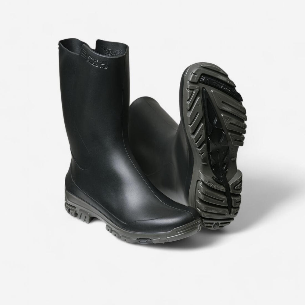Las botas de PVC que te presentamos en esta página se lavan con agua y jabón (por dentro y por fuera) muy fácilmente. También se secan rápidamente. Gracias a la media altura, las lengüetas sacabotas y las estrías para ponérselas fácilmente, con este modelo te puedes calzar y descalzar en pocos segundos. Además, la suela con tacos antideslizantes reduce el riesgo de resbalar en suelos mojados o fangosos.