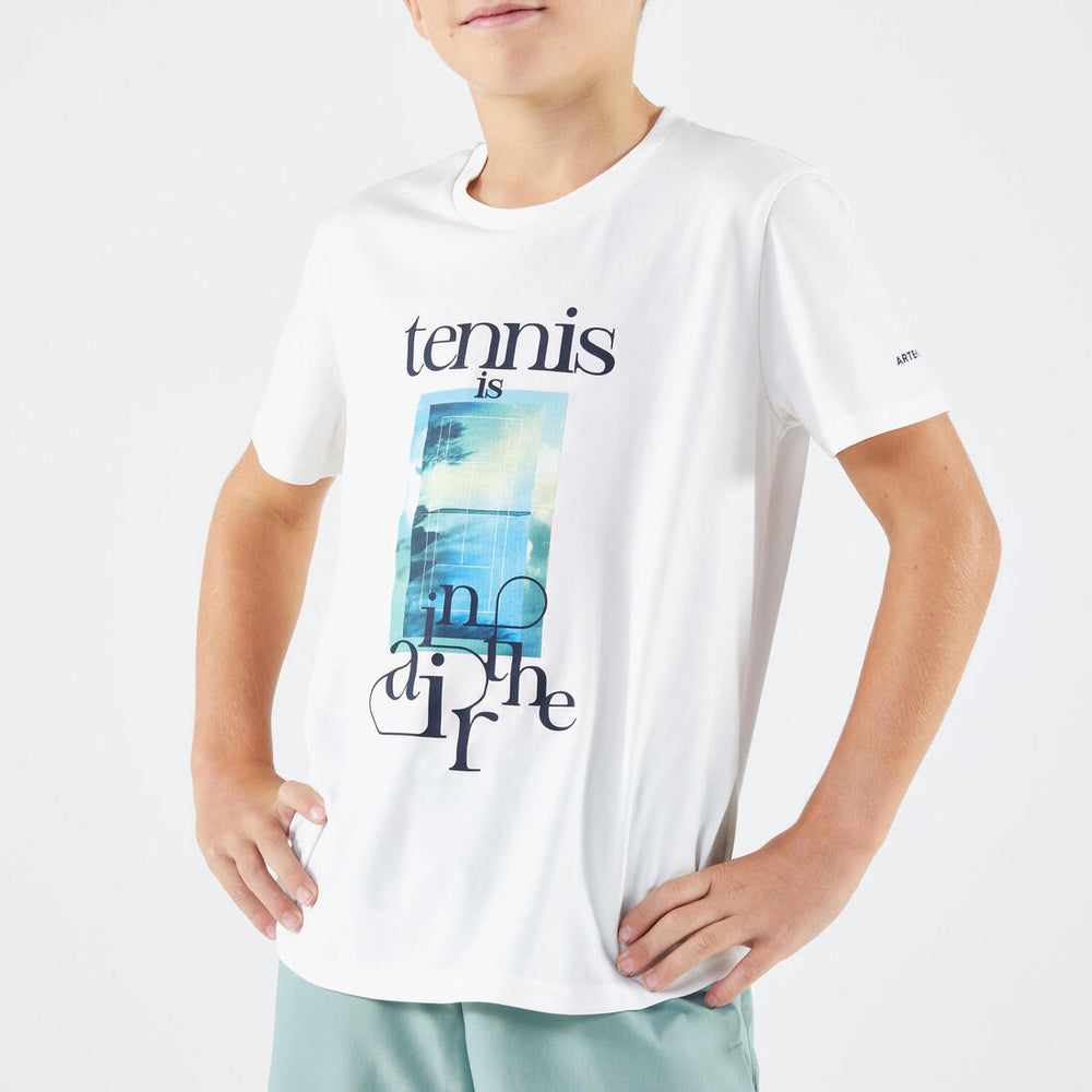 Hemos diseñado esta camiseta para niños que quieren jugar al tenis u otros deportes de raqueta con tiempo cálido.