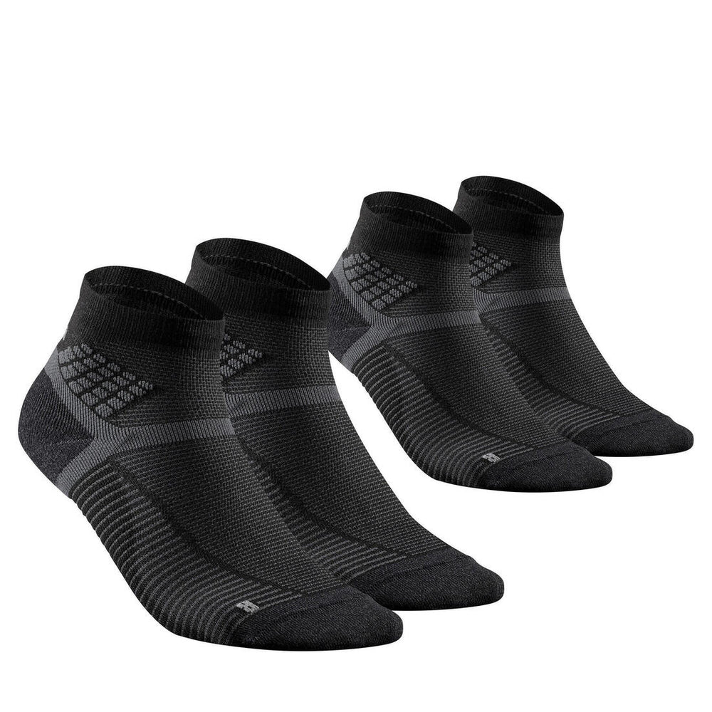 El talón y la puntera han sido reforzados para reducir el riesgo de aparición de ampollas. Su altura llega justo por encima del tobillo, por lo que son recomendados para zapatillas de caña baja.