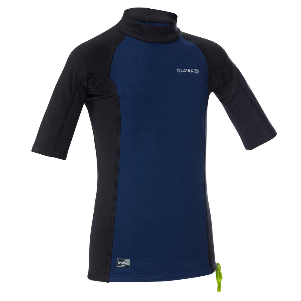 Playera anti-UV con partes de neopreno para proteger a los niños del sol, incluso en el agua. Este top también ofrece aporte de calor y limita las irritaciones producidas por el contacto con la tabla