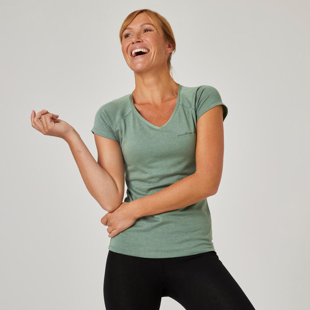 No hay que ser una especialista de la moda: nuestra playera lo tiene todo para crear un conjunto que funciona. ¿Por qué? Sus mangas cortas son ideales para el calor; Y cuando hace frío, solo tienes que añadir una segunda capa. Su cuello de pico realza tu porte y su corte slim sublima tus curvas. Así que ¿esta playera es un top o un flop? (Pssst, te soplamos la respuesta correcta: es un TOP).