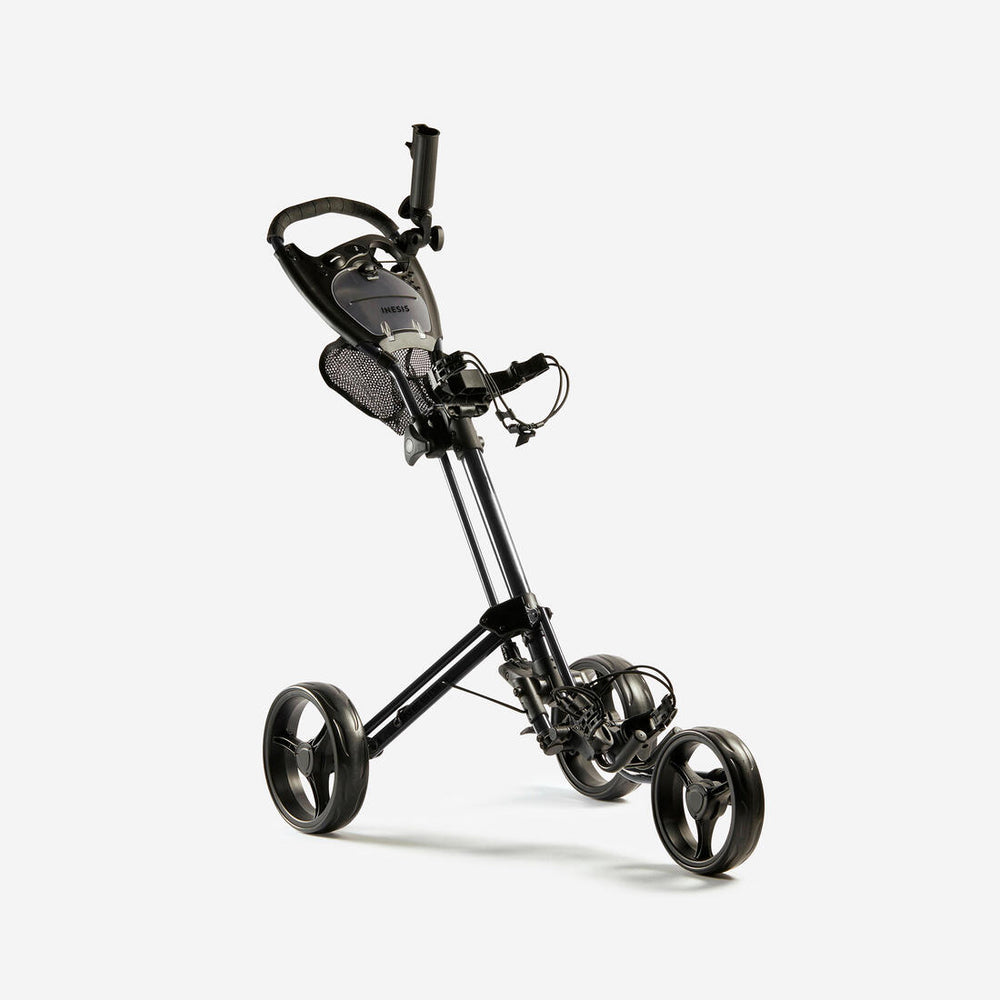 Diseñamos este carrito de golf de 3 ruedas para transportar fácilmente la bolsa de golf en los recorridos.