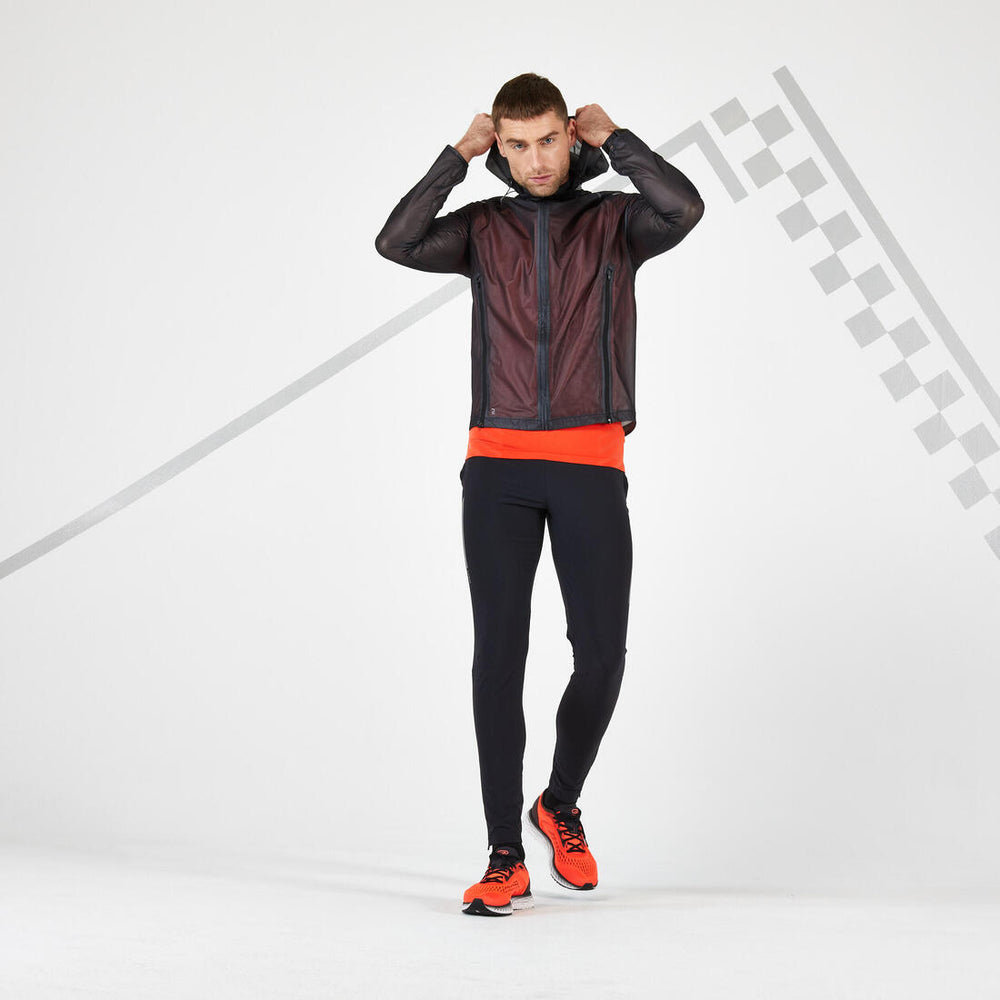 Esta chamarra te protegerá de la lluvia y el viento, cuando el clima sea inestable o con lluvias dispersas. Puedes regular la temperatura durante tus entrenamientos gracias a los cierres debajo de los brazos. Si deja de llover, puedes doblarla en su bolsillo propio y engancharla a la mano o al brazo gracias a su elástico.