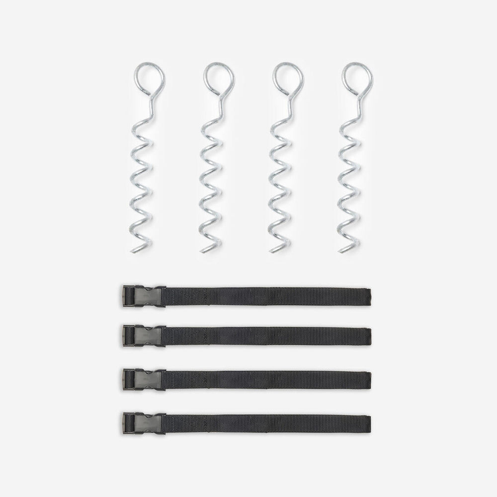 El kit de anclaje es ideal para reforzar la buena sujeción de la cama elástica al suelo, especialmente en caso de intemperie.