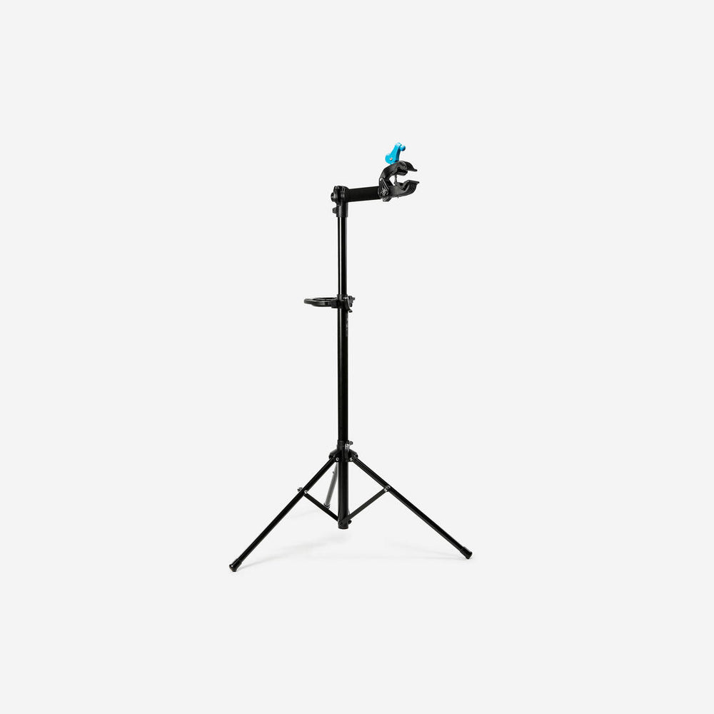 Disfruta de un trípode estable para bicicletas de hasta 25 kg, fácil de usar con su pinza que gira 360°. Gran compacidad para un fácil almacenamiento.
