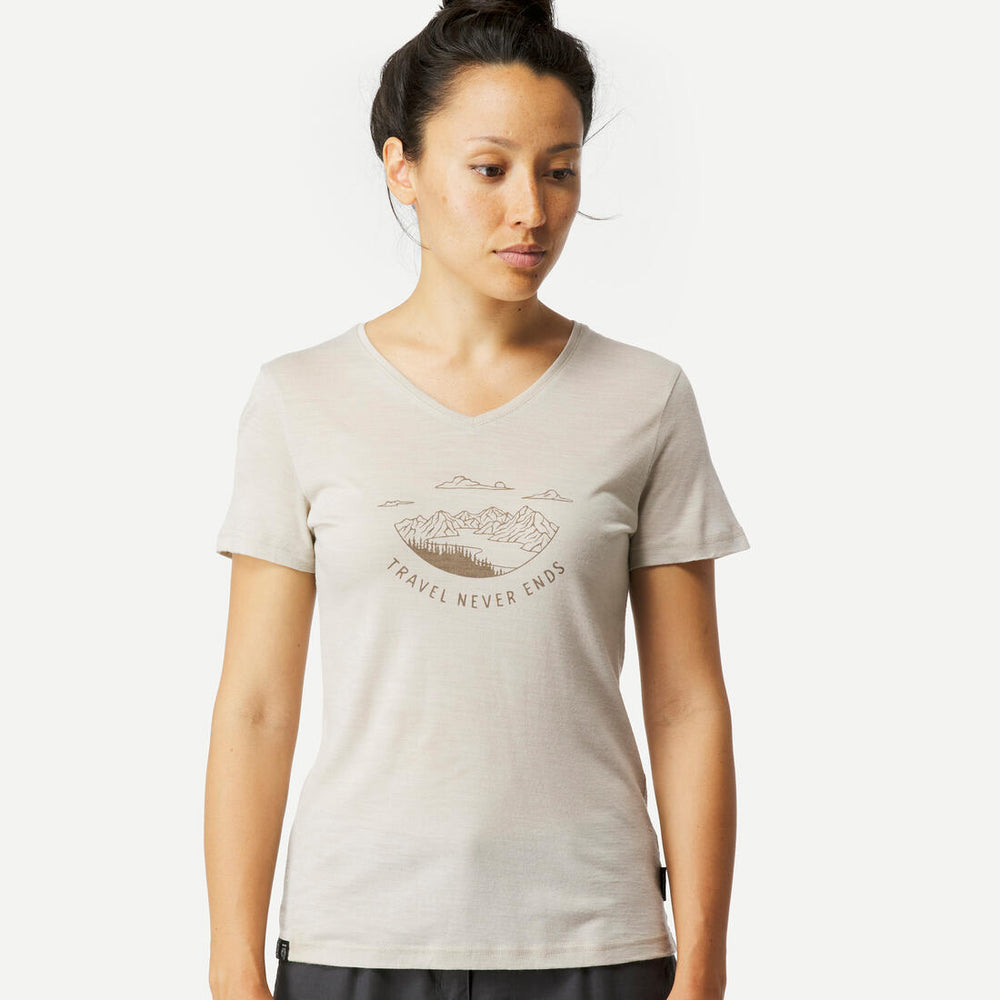 Esta camiseta de lana Merina (70%) permite viajar ligero de equipaje llevando poca ropa.