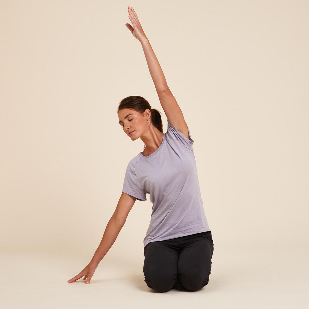 Para una sesión tranquila, nuestros yoguis te proponen esta playera de algodón (suavidad), lyocell (vaporosidad) y elastano (comodidad).