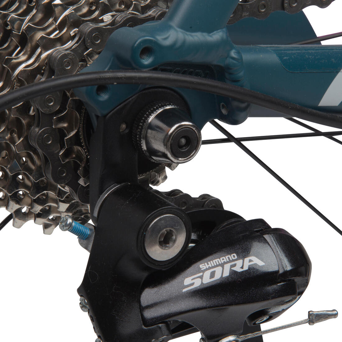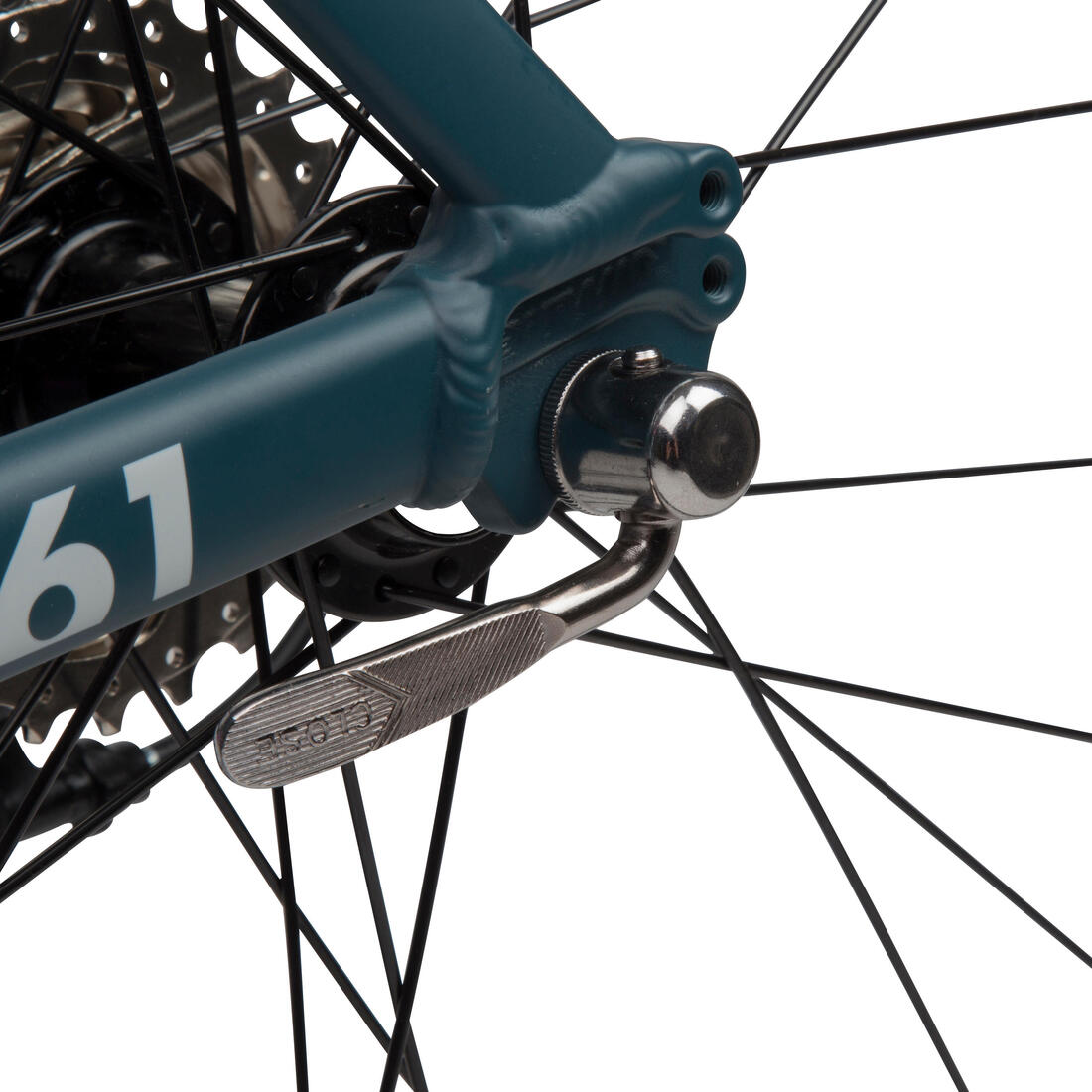 Eje de 160 mm, compatible con la distancia entre ejes clásica de 130 mm (bicicleta de carretera) y 135 mm (BTT).