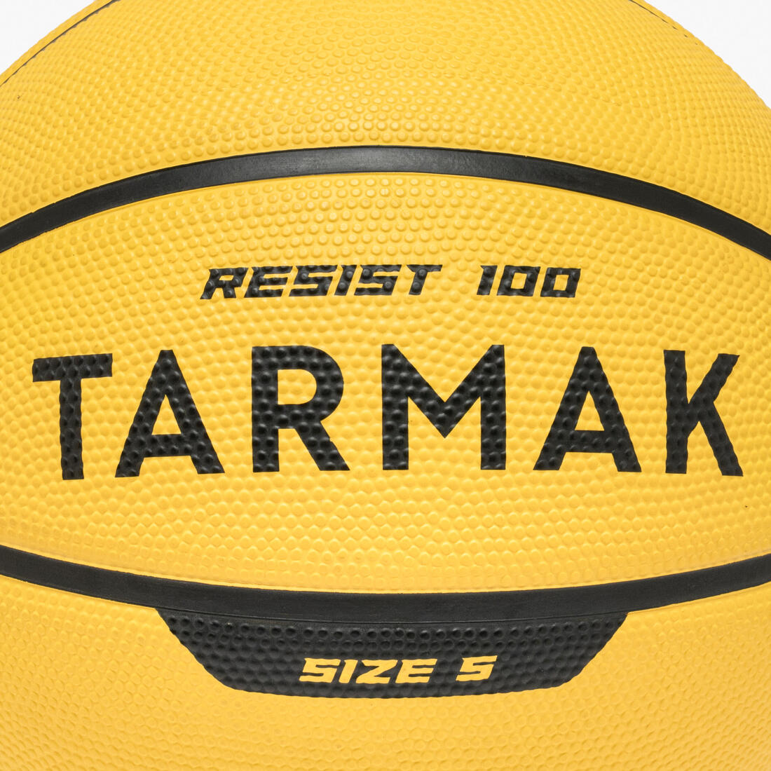 Este balón de básquetbol es de talla oficial 5, para niños y adultos. Sólido y adherente, perfecto para iniciarse en exterior en casa o en el terreno de juego.