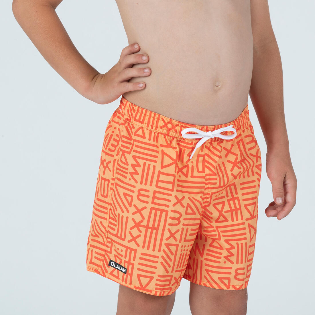 La cintura elástica de este traje de baño se adapta perfectamente a la cintura del niño. Una vez puesto, el boardshort se mantiene en su sitio gracias al cordón de ajuste, para jugar en las olas con total seguridad.