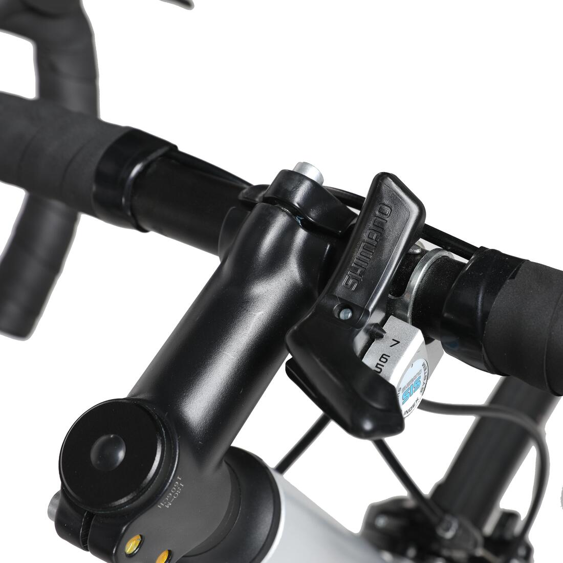 Cambio de velocidades sincronizado en el manubrio SHIMANO A050 7 velocidades. Muy cómodo y ergonómico: cambia las velocidades sin soltar la parte superior del manubrio. La palma de la mano se adapta a la perfección a la palanca.
