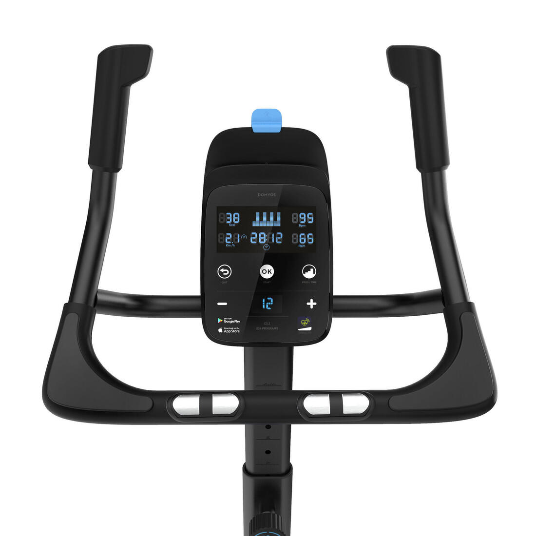 El top de gama Domyos. Diseñada para durar, hemos sido muy exigentes con la calidad de esta bicicleta. Ultracómoda, con numerosos ajustes, autoalimentada y conectada a aplicaciones de entrenamiento.