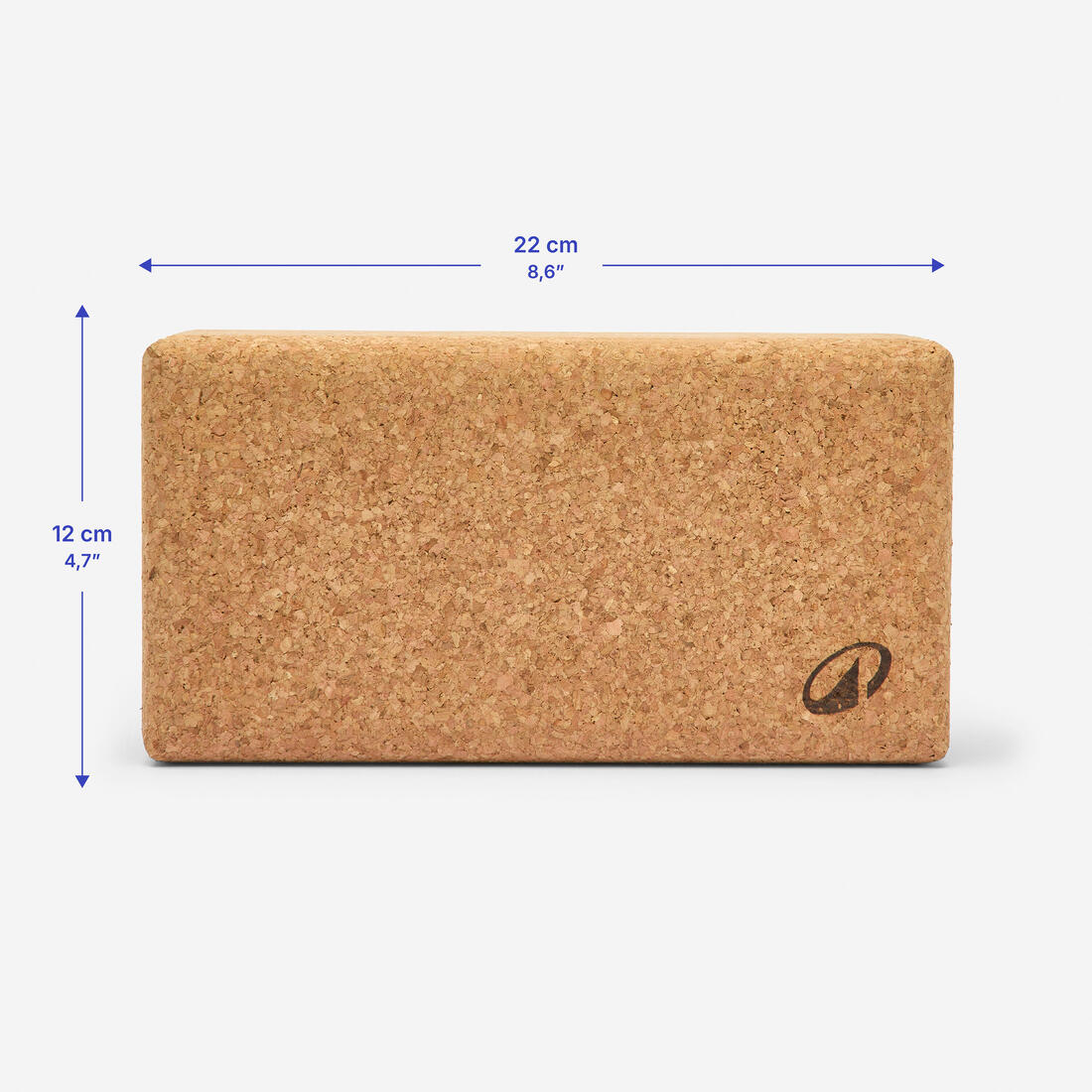 El bloque de corcho pesa 570 g. Tamaño: 22 X 12 X 7.5 cm Los bordes redondeados facilitan el agarre y la comodidad de las posturas. El corcho es un material suave, silencioso y fácilmente lavable con agua jabonosa.