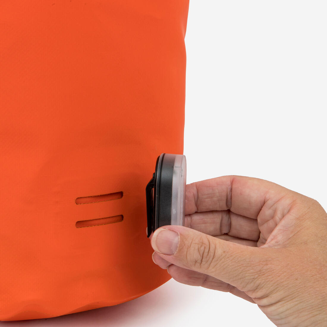 Si llevas dispositivos electrónicos o documentos importantes, recomendamos duplicar la protección utilizando una funda estanca (IPX8) o una segunda bolsa estanca más pequeña que quepa dentro de esta. Asegúrate de cerrar bien las bolsas y comprueba regularmente su estanqueidad con un papel absorbente antes de las salidas. NO NADES CON LA BOLSA NI LA SUMERJAS BAJO EL AGUA.