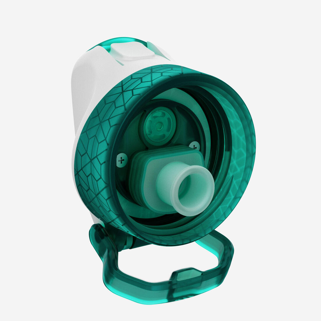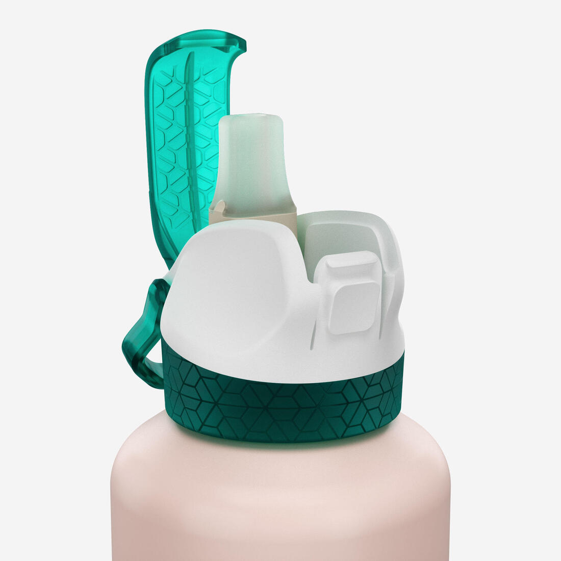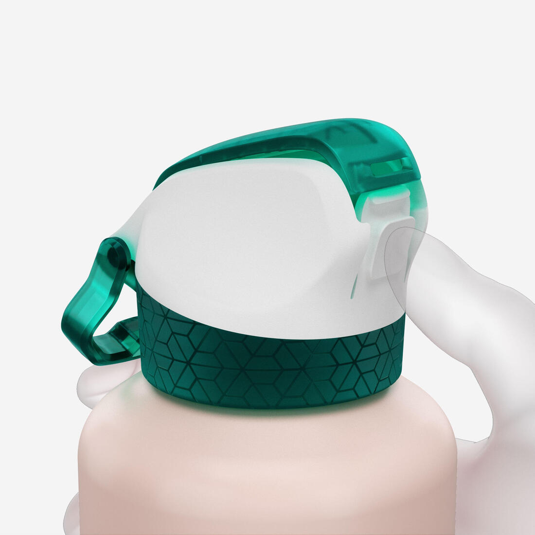 Si usas el popote, bebes por "aspiración", con la cabeza recta. Puedes beber como con una botella clásica, retirando el popote interior. Sin embargo, esto puede producir ruido, debido a la entrada de aire en contacto con el agua. Asa en el tapón para facilitar el transporte con la mano, o para fijarla en la mochila con una correa o un mosquetón.
