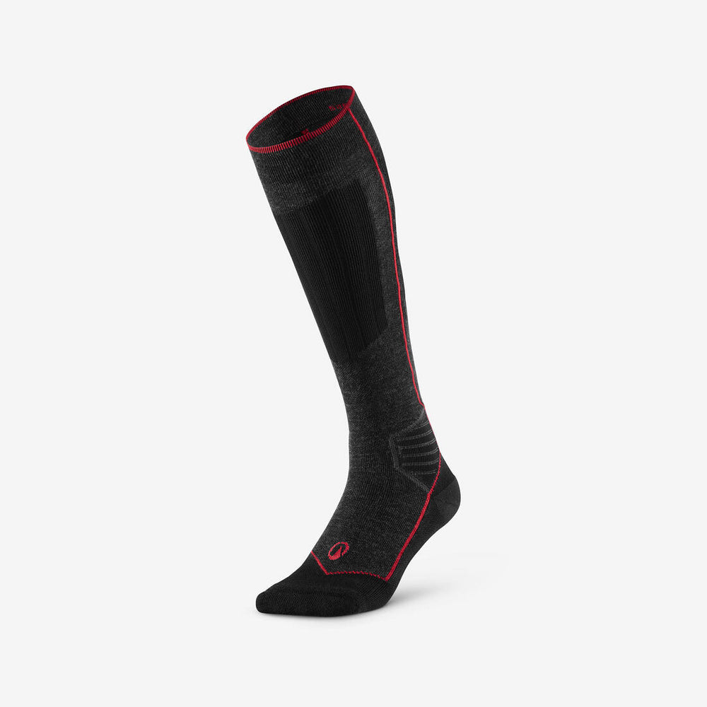 Por su alto contenido de lana, este calcetín de ski ofrece resistencia, buen poder aislante y gran capacidad de absorción de la humedad. El elastano mantiene el calcetín en su lugar al esquiar.