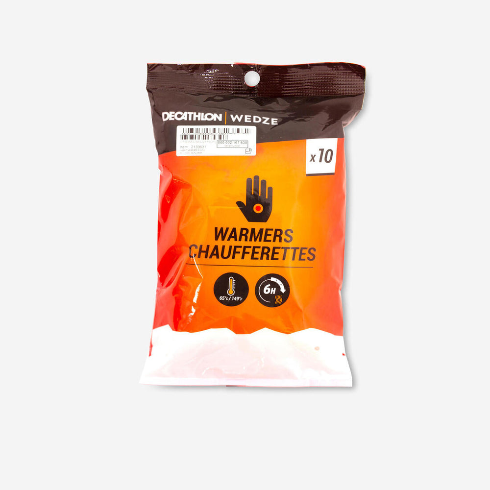 Estos calientamanos están diseñados para su uso con tiempo frío. No los uses cerca de una fuente de calor: calefacción en el coche, chimenea, etc. No están pensados para actividades deportivas intensas y deben evitarse en caso de sudoración. Si el calientamanos te parece demasiado caliente o experimentas molestias, irritaciones o enrojecimiento, retíralo.