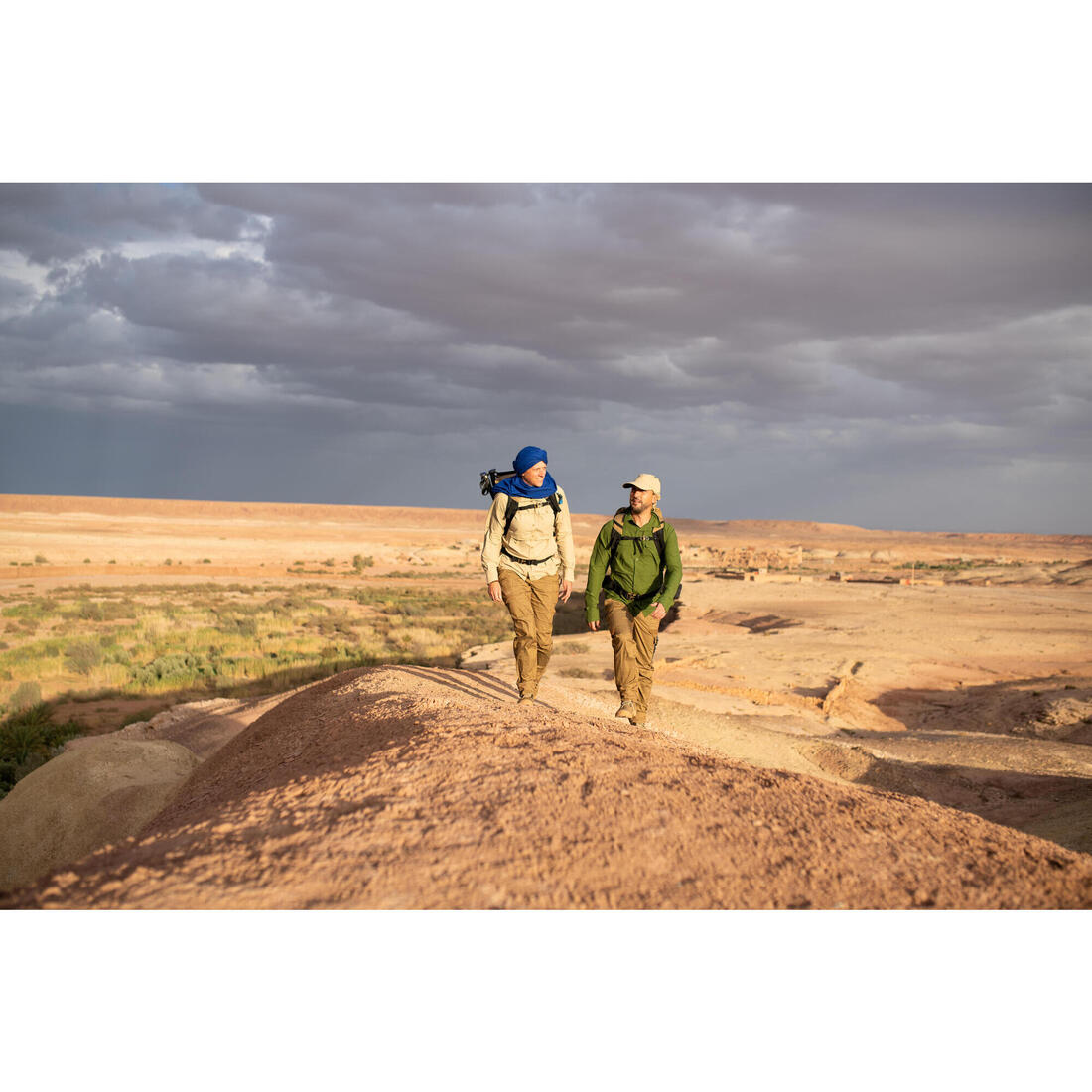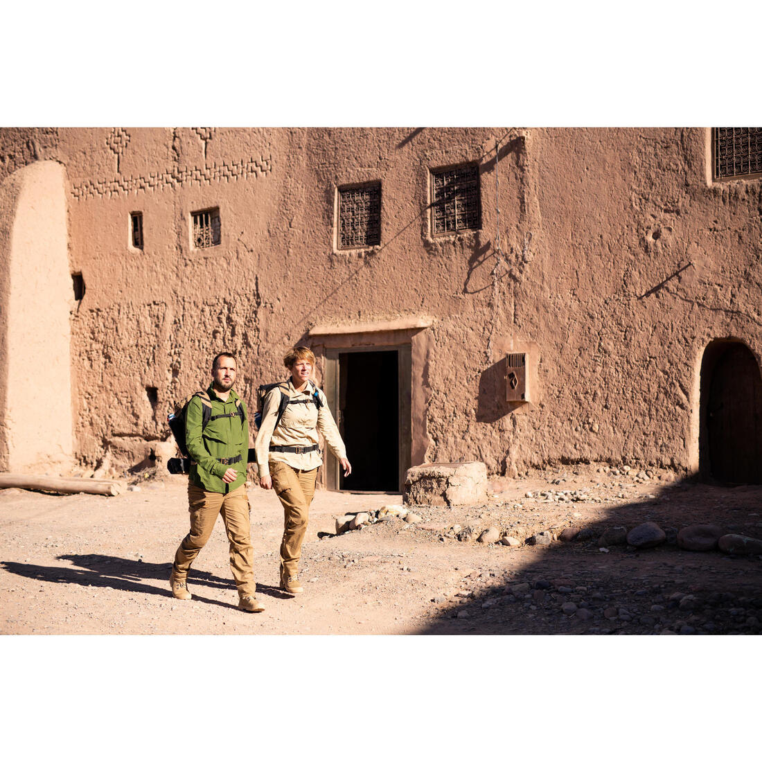 Para gestionar mejor el calor del desierto, esta camisa de corte amplio está confeccionada en una tela ligera y con aberturas a la altura del vientre y en la espalda. Gracias a ello, el tejido no se pega a la piel y el aire circula para limitar el sudor. Las ventilaciones dorsales no funcionan con una mochila pegada a la espalda. La mochila Desert 500 permite que las ventilaciones dorsales funcionen correctamente.