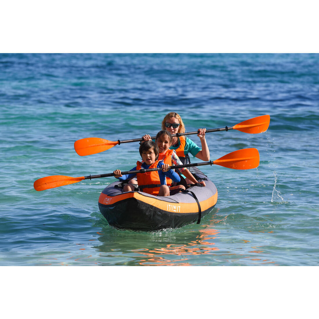 Canoa kayak inflable con 3 plazas adulto sobreelevadas para un buen confort de remo. Estable y seguro, ideal para los paseos en familia.