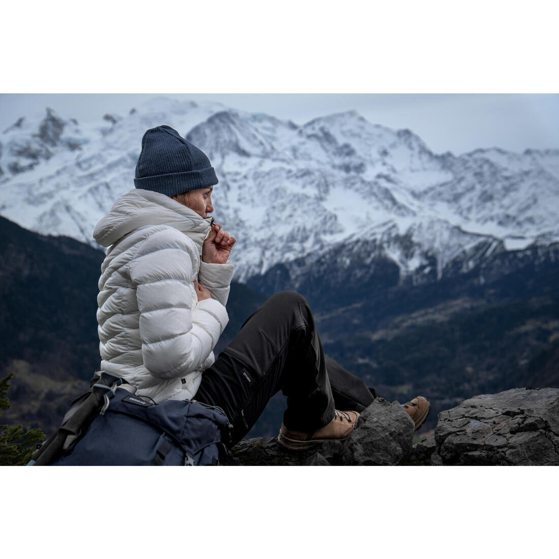 Chamarra con capucha de plumón, concebida por nuestro equipo, apasionados de trekking en montaña, para practicar con tiempo frío hasta a -10 °C.