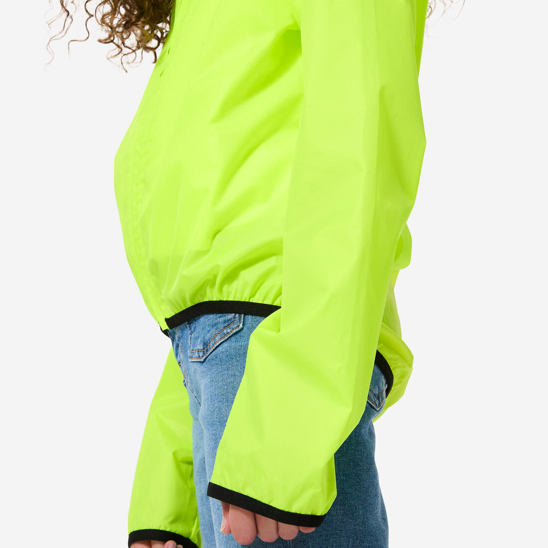Esta chamarra impermeable de ciclismo para niños protege de la lluvia y del viento durante las salidas ocasionales. Con certificación EPI, serás visible en tus salidas.
