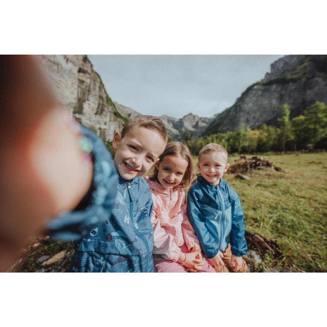 Nuestro equipo, padres de jóvenes senderistas, ha concebido esta chamarra impermeable para proteger a los niños con clima lluvioso o ventoso en senderismo.