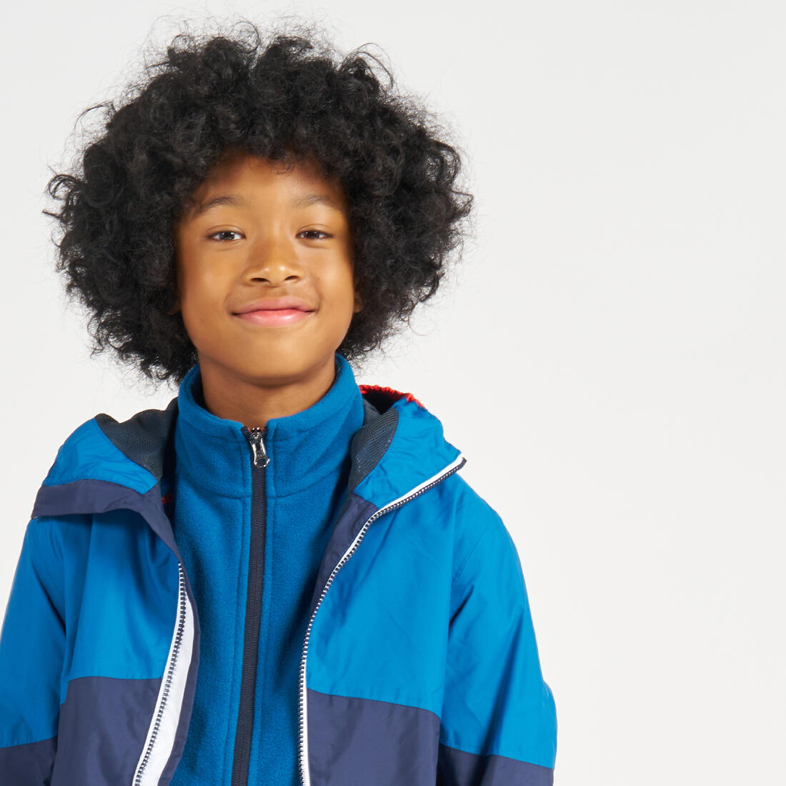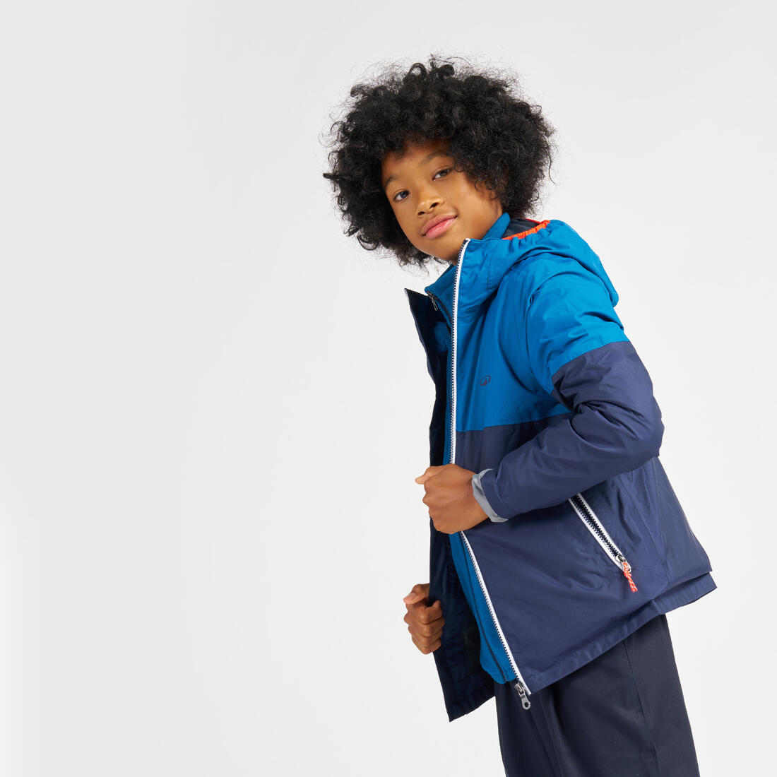 Cierre a lo largo de toda la chamarra con solapa interior y pieza para protegerse del viento y el agua. Solapa de tejido suave en la parte superior del cuello para proteger la barbilla.