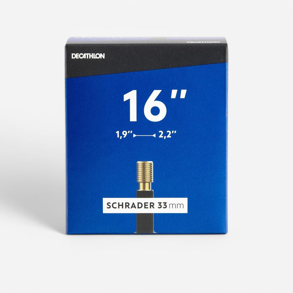 Cámara de aire adecuada para llantas de 16 pulgadas de diámetro, sección de 1.90 a 2.20 con válvula Schrader de 33 mm.