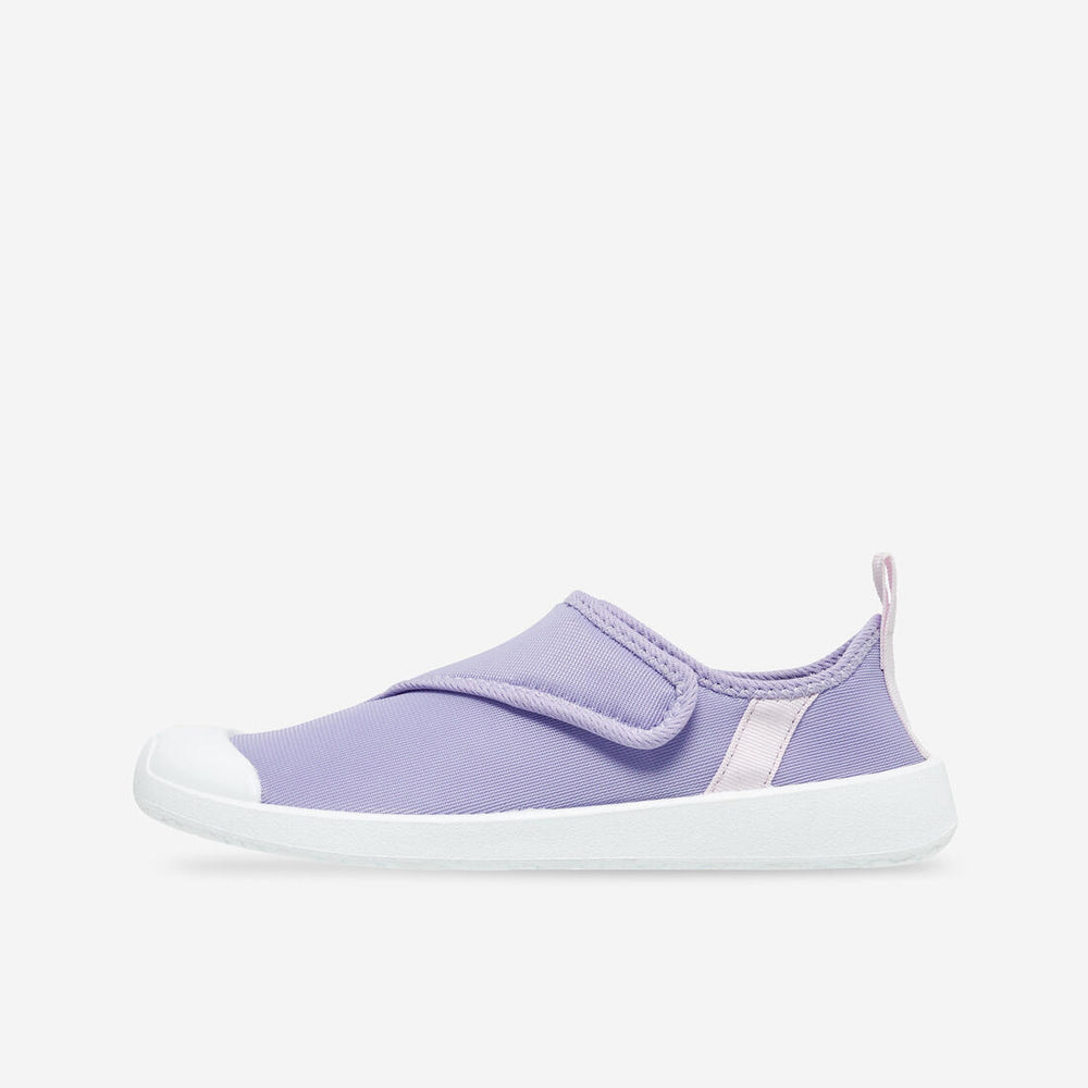 Una tira de velcro en la parte superior del pie para permitir que los niños sean independientes con sus zapatos acuáticos.