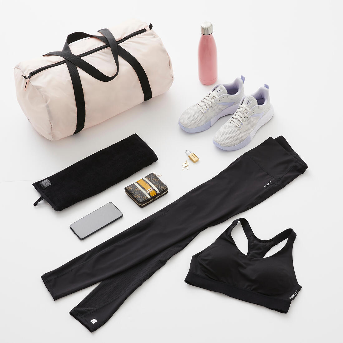 Nuestro equipo apasionado del fitness ha diseñado esta bolsa plegable para transportar la ropa y los accesorios de fitness a la sesión.