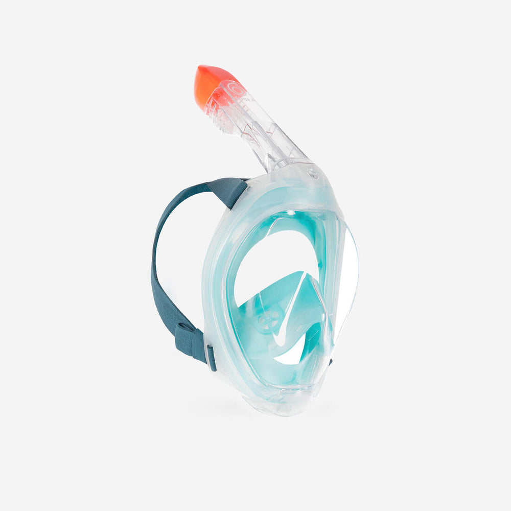 Easybreath: la máscara que permite respirar por la nariz y la boca, ofrece un amplio campo de visión y tiene un sistema antivaho gracias a la circulación del aire. Disponible para adultos y niños. Easybreath+: además, una válvula acústica para hablar de forma más audible en la superficie, con la cabeza fuera del agua, sin quitarse la máscara. Easybreath 900: nariz flexible que permite compensar los oídos y descender a profundidades de hasta 3 m. ¡No te quedes en la superficie, baja!