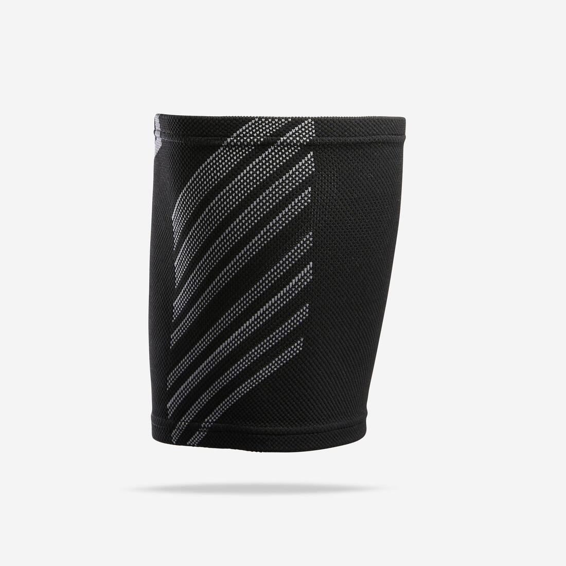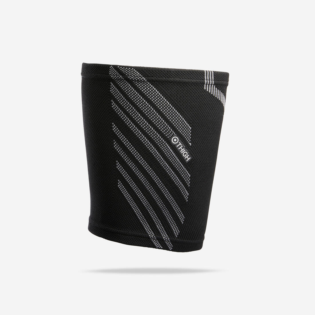 Esta muslera de sujeción proporciona contención muscular al comprimir uniformemente el muslo. Úsala cuando hagas deporte.