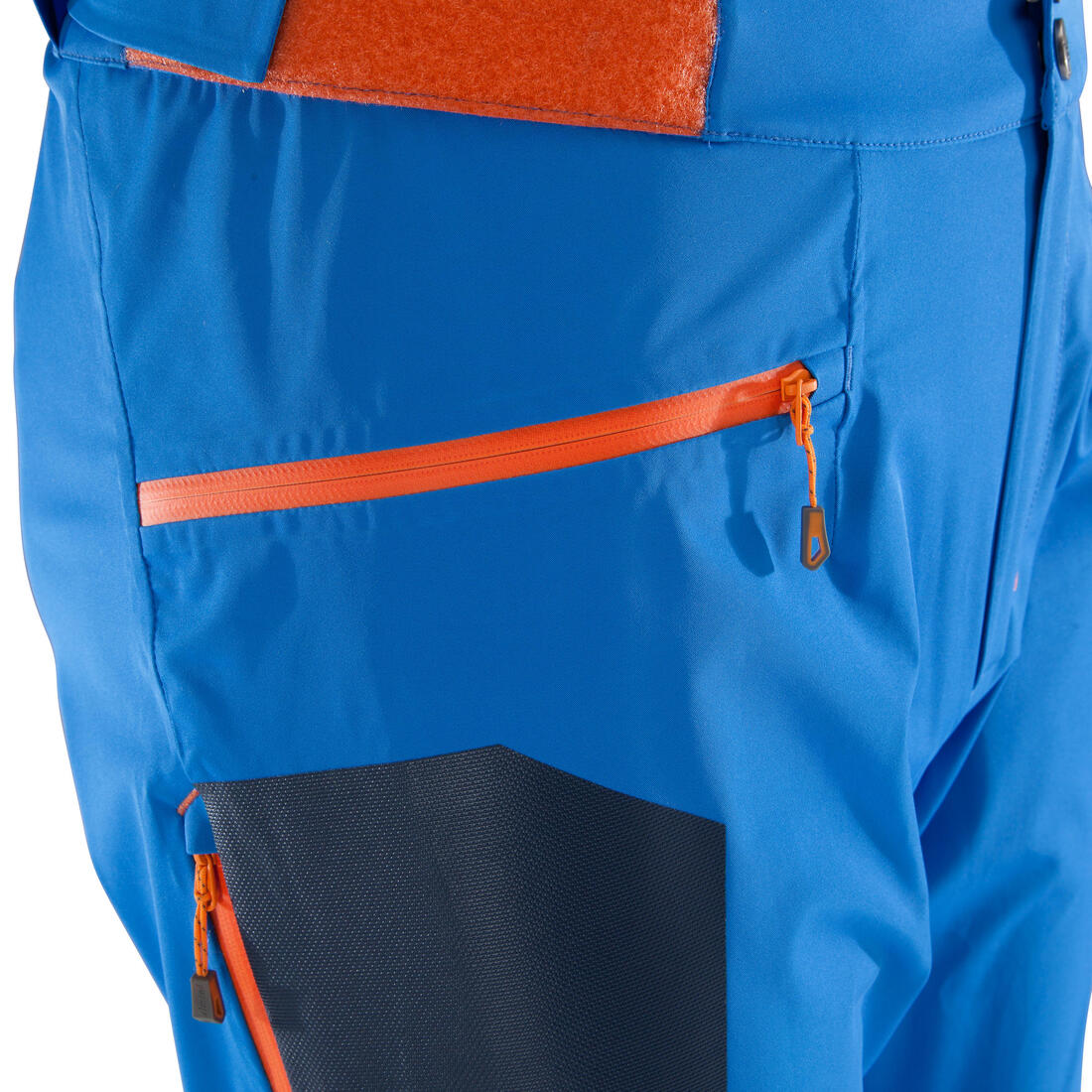 - 2 bolsillos con cierre impermeable, reposamanos, accesibles con arnés. - 2 aireaciones con cierre laterales. - Cintura elástica - Tirantes ajustables y desmontables - Refuerzos en el interior de las bastillas y protección ante golpes de los crampones - Refuerzos en la parte superior de los muslos para protección de los tornillos - Bastillas ajustables para colocar el pantalón sobre las botas de montaña o las botas de esquí (doble cierre: con zipper y broches). Polainas integradas y desprend.