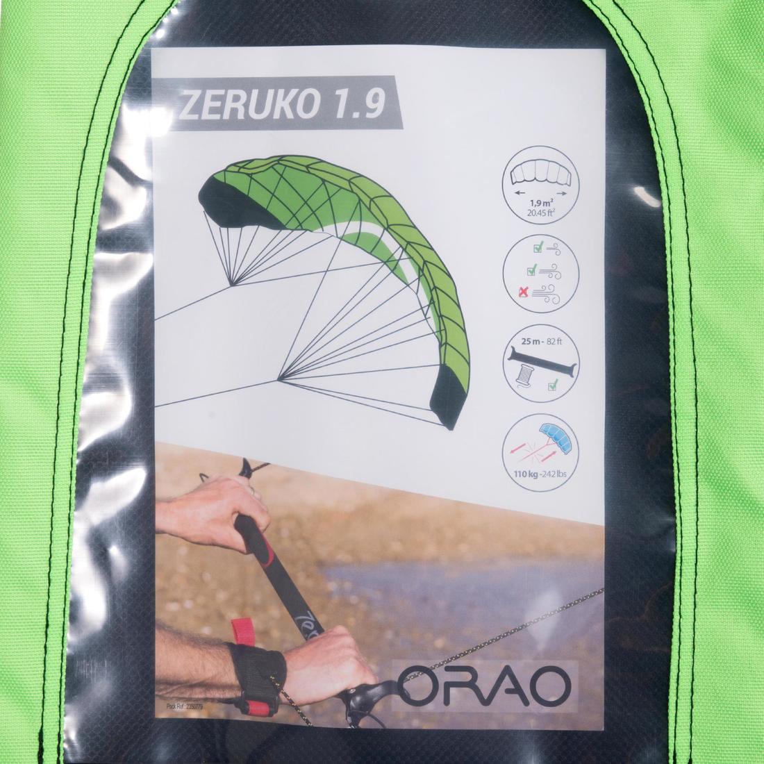 El papalote Zeruko 1.9, manejable y fácil de pilotar, ¡te ofrece velocidad, tracción y sensaciones! Se entrega con una barra de pilotaje para iniciarse en el pilotaje de los papalotes de kitesurf.