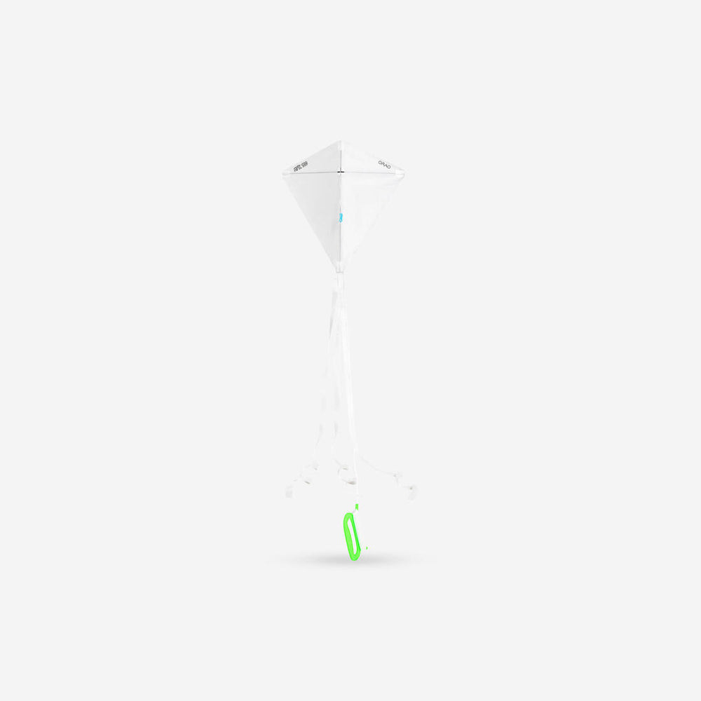 Un papalote que puede volar solo o en «tren»; está equipado con un gancho de fijación que permite conectar varios papalotes, uno tras otro Papalote con mando de pilotaje y línea de 36 m Se entrega montado Dimensiones: 40 cm de envergadura/130 cm de altura (de ellos, 90 cm de cola)