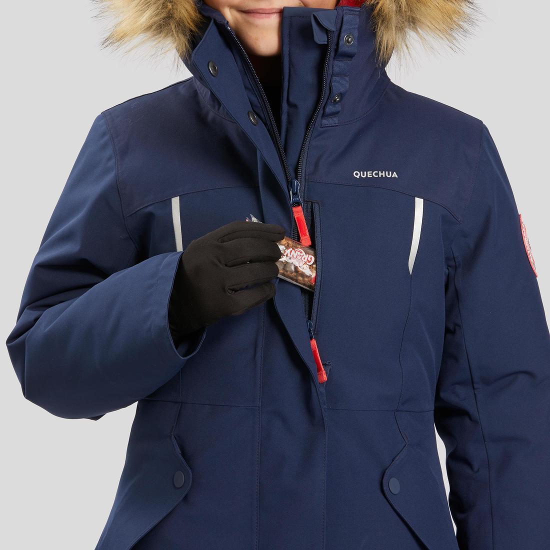 Desarrollamos esta chamarra para condiciones invernales duras: frío, nieve, ventisca. Aporte de calor proporcionado por una capa gruesa de guata (doble capa en el cuerpo), componente sintético aislante gracias al aire encerrado en sus fibras. Agregamos una solapa interior ancha guateada bajo el cierre principal para impedir el paso del aire frío. Prueba de laboratorio: a -17 °C, el 70% de los niños sienten confort térmico.Sin embargo, cada persona tiene su propia sensibilidad al frío.