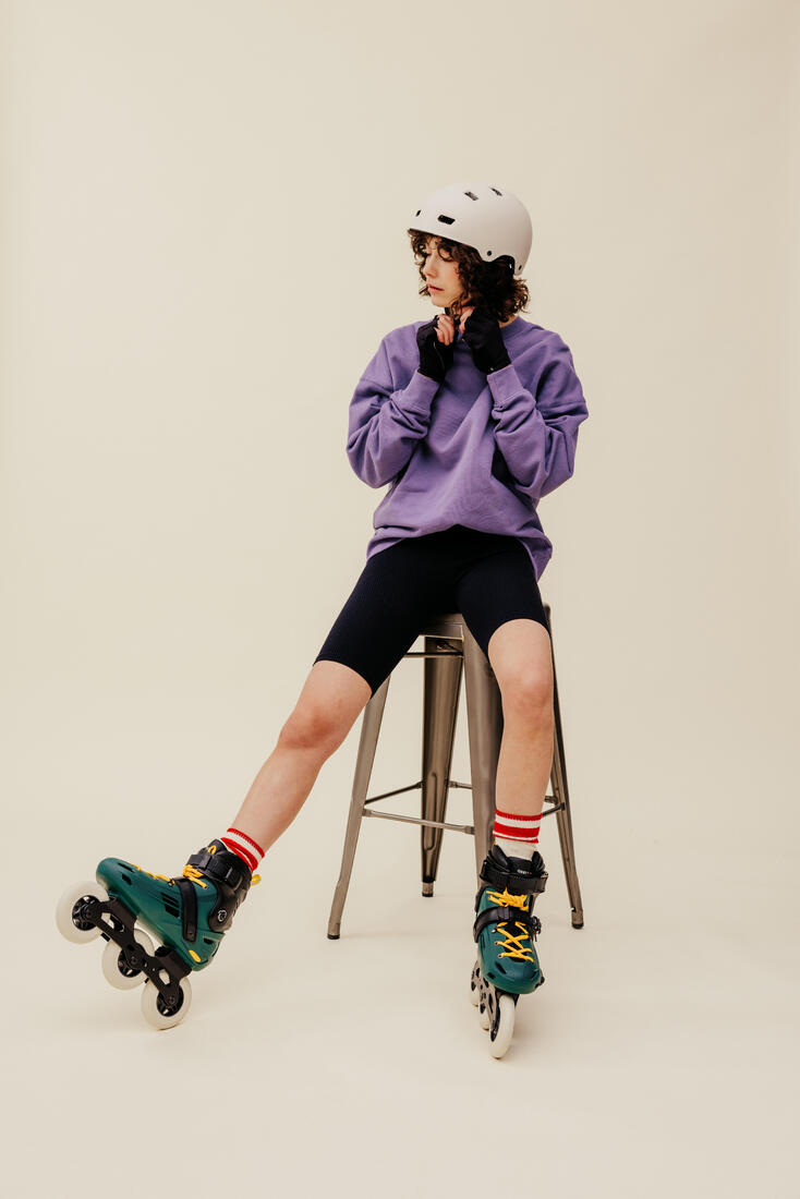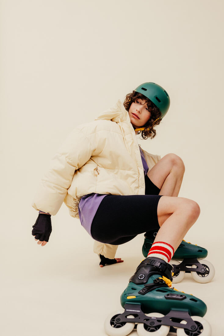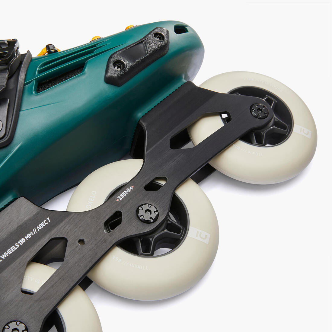 Para garantizar su polivalencia y asegurar una excelente calidad de deslizamiento, el patín está provisto de llantas de 110 mm y de una platina sólida (para soportar los diferentes saltos y slides) y reactiva. La platina de 3 ruedas permite mantener una dimensión ofreciendo manejabilidad. La platina se puede desplazar ligeramente a izquierda o derecha para un ajuste más preciso según tus necesidades.