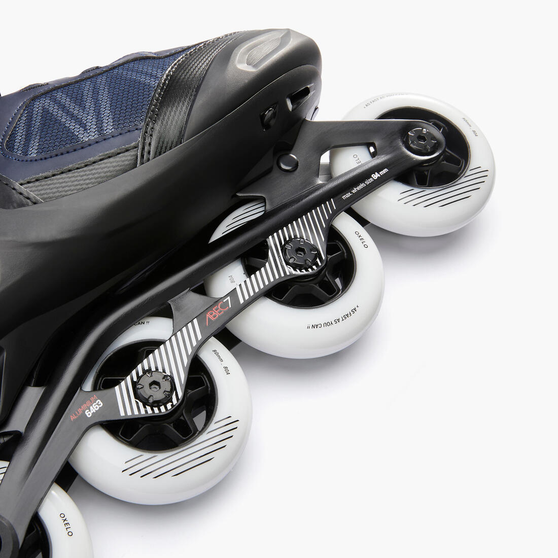 No con Oxelo. Los patines FIT 500 ofrecen una excelente calidad de deslizamiento gracias a la platina de aluminio (más rígida que una platina de plástico, con una buena restitución de energía), a los rodamientos ABEC 7 y a las nuevas ruedas de goma de 80 mm (dureza 80 A para aportar adherencia y comodidad). La combinación del chasis de aluminio con ruedas de goma de 80 mm aporta una buena relación entre impulso y calidad de deslizamiento. La platina también admite ruedas de 84 mm.