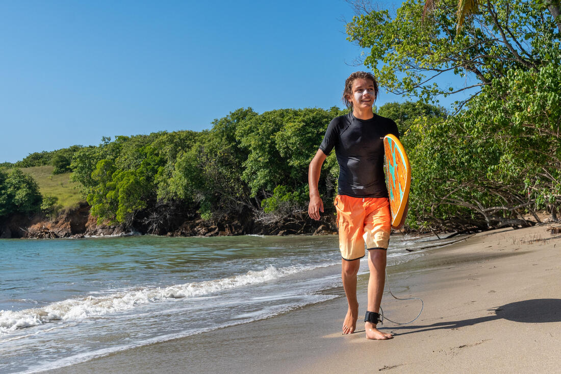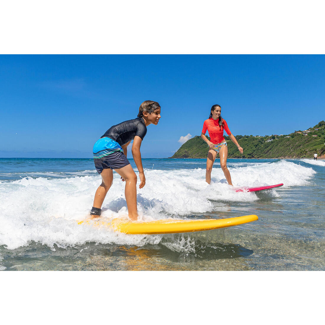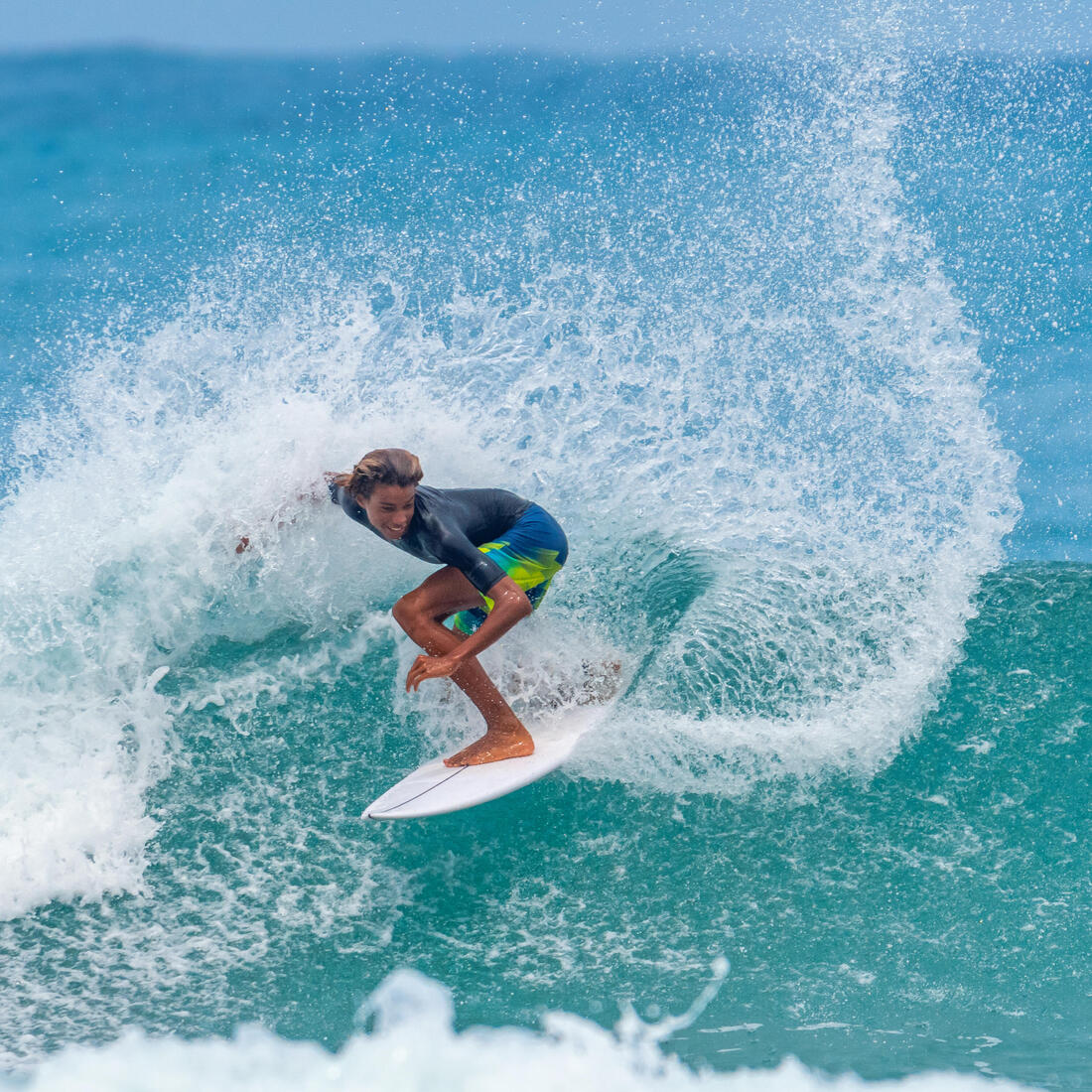 Playera anti-UV para niños de manga corta para protegerse del sol, incluso en el agua y limitar las irritaciones por contacto con la tabla. Corte ajustado para mayor estabilidad en las olas.