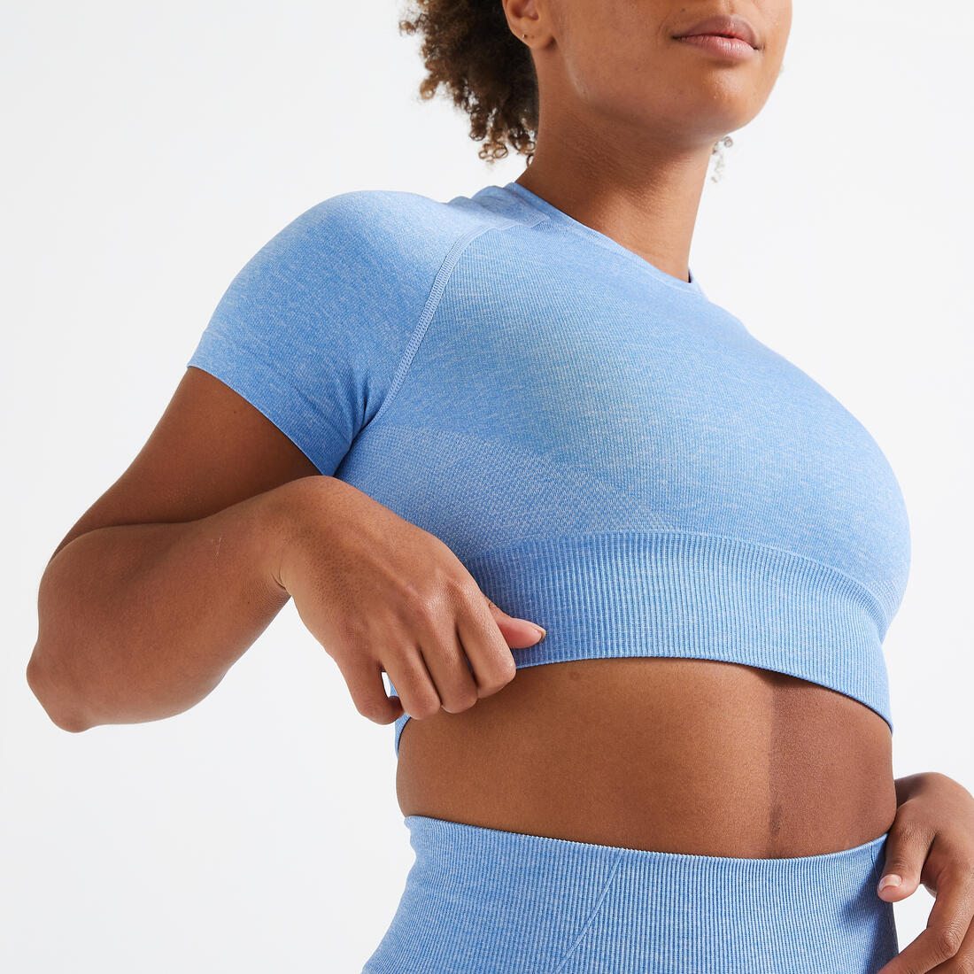 ¿Conoces la tecnología seamless? Pensada para tu confort, permite confeccionar una playera crop top con una sola pieza de tejido técnico. De este modo, no hay ninguna costura y evitas totalmente las zonas de roce. Además: su tejido es extensible, ajustado, muy suave y transpirable.
