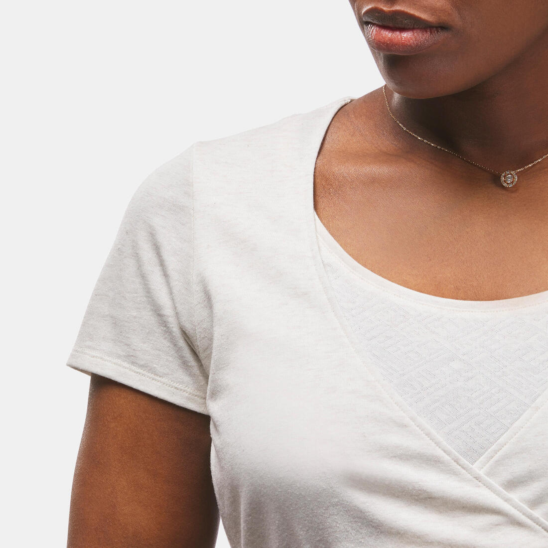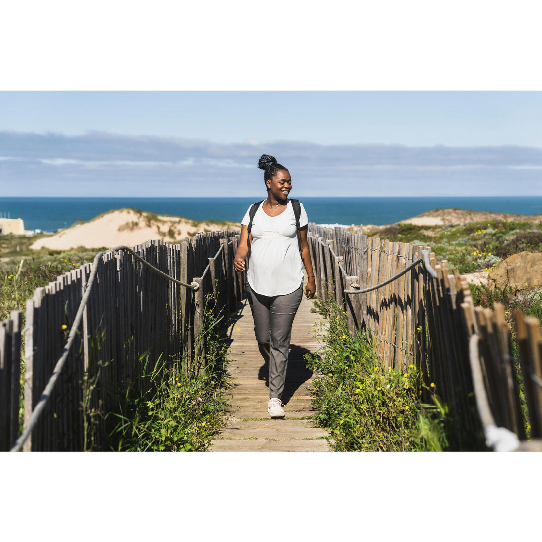 Nuestros diseñadores ecodiseñaron y cocrearon con mamás y para las mamás, esta playera de maternidad para hacer senderismo en planicie, bosque y litoral.