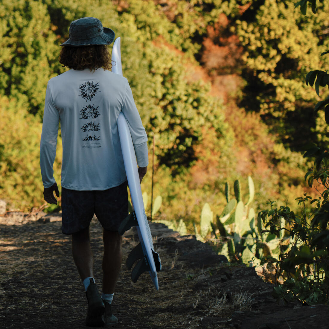 Playera anti-UV de manga larga para proteger de los efectos nocivos del sol, incluso mojada. Limita las irritaciones por contacto con la tabla. Corte amplio, facilita la colocación y los movimientos.