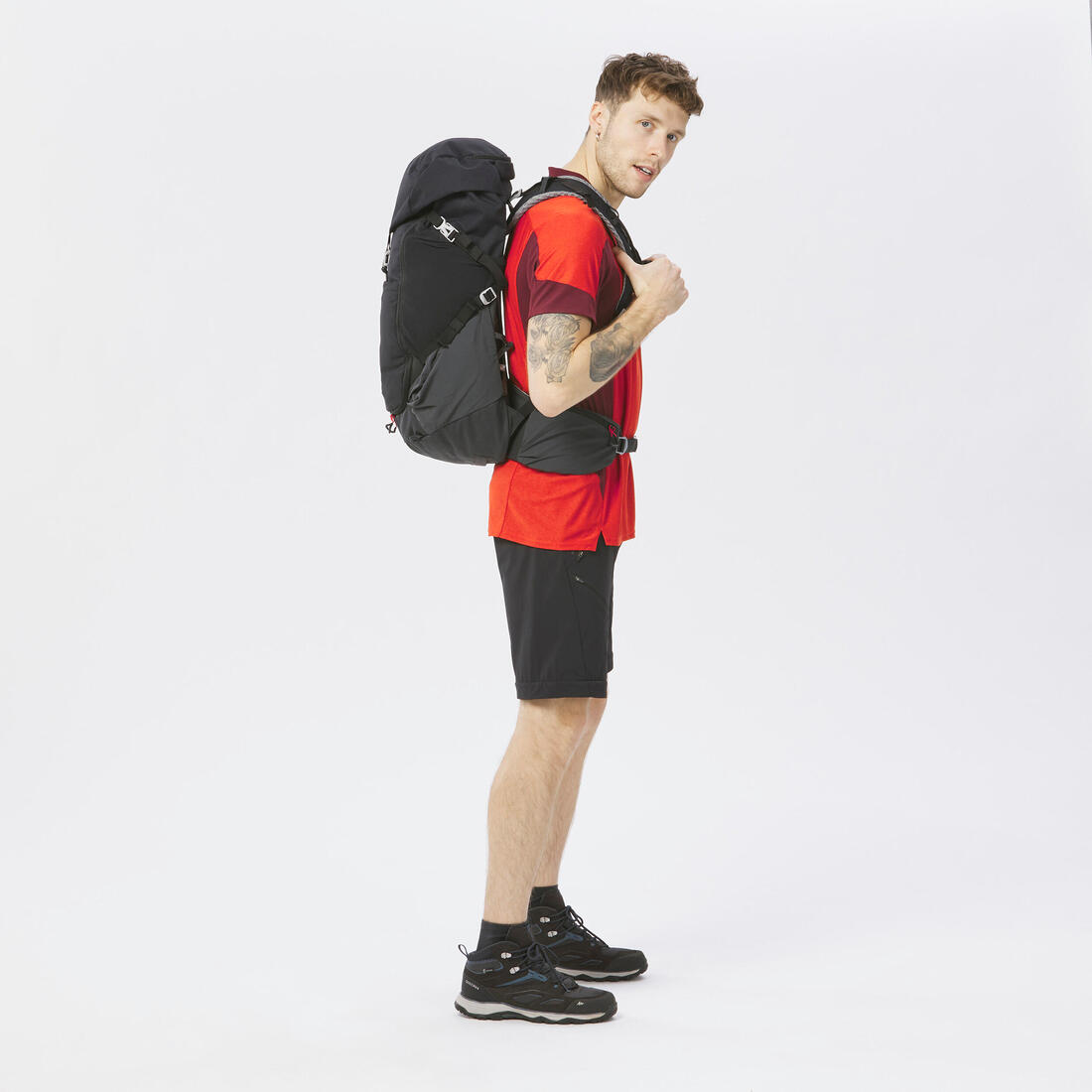 Playera con corte regular ligeramente ajustado. Elige tu talla habitual o una talla superior si prefieres llevar una prenda de corte más amplio. Hemos optado por un diseño de la parte inferior de la espalda más envolvente par mayor protección durante la marcha. El cuello también es más envolvente para proteger de los tirantes de la mochila.