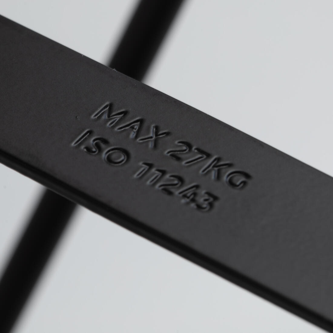 Este portaequipajes desarrollado para bicicletas de adulto es ligero y fácil de usar. Soporta una carga de hasta 27 kg.