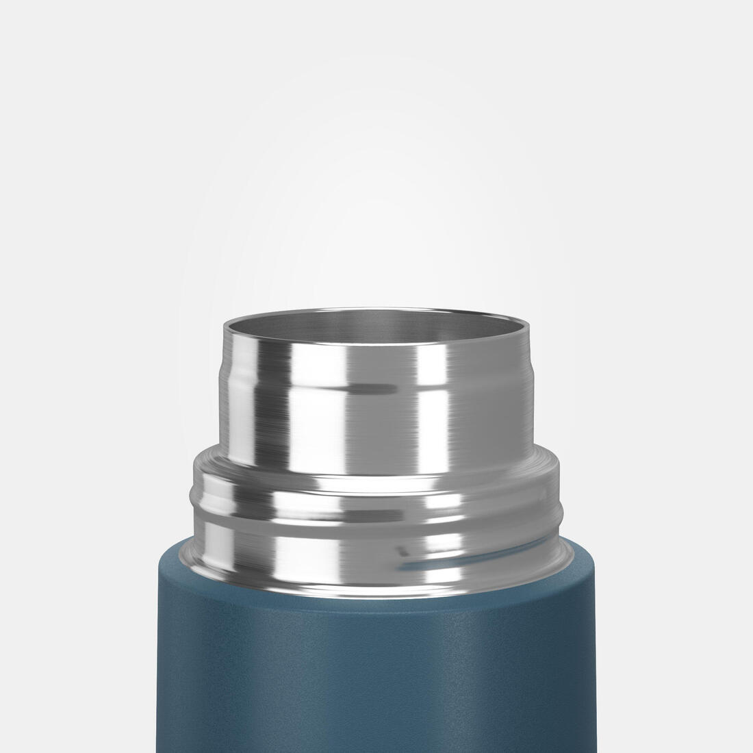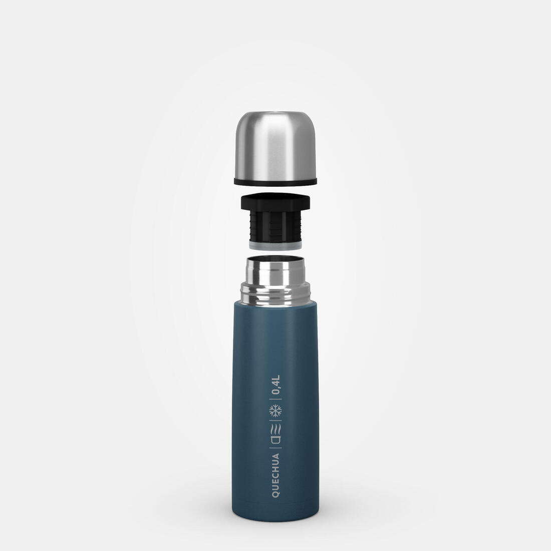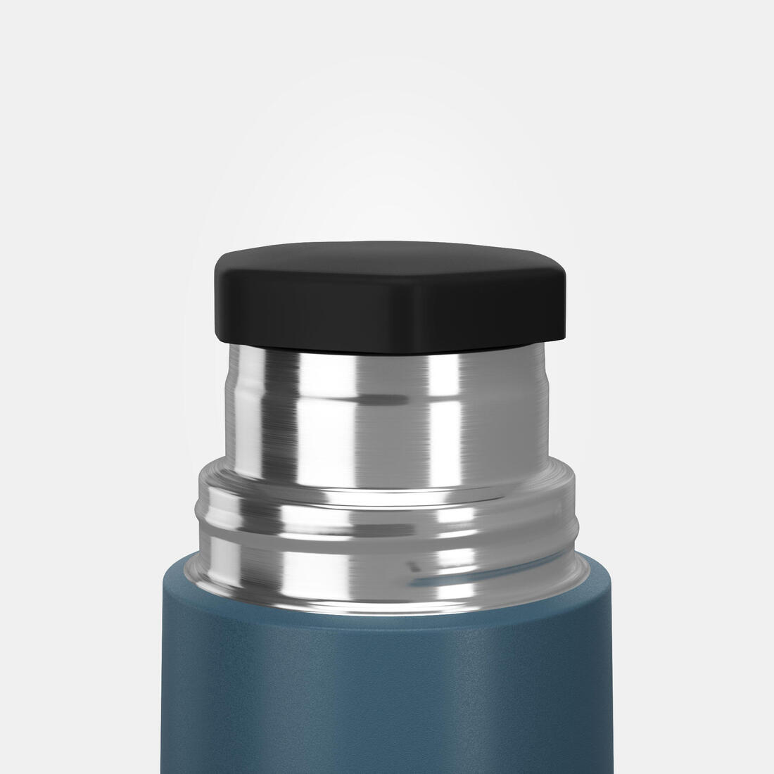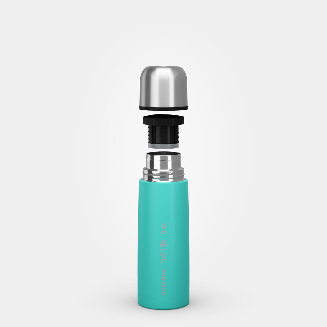 El tapón se puede desenroscar parcialmente para servir, evitando la apertura total del tapón que reduciría el rendimiento isotérmico. El vaso incluido se enrosca en la botella para facilitar el transporte.