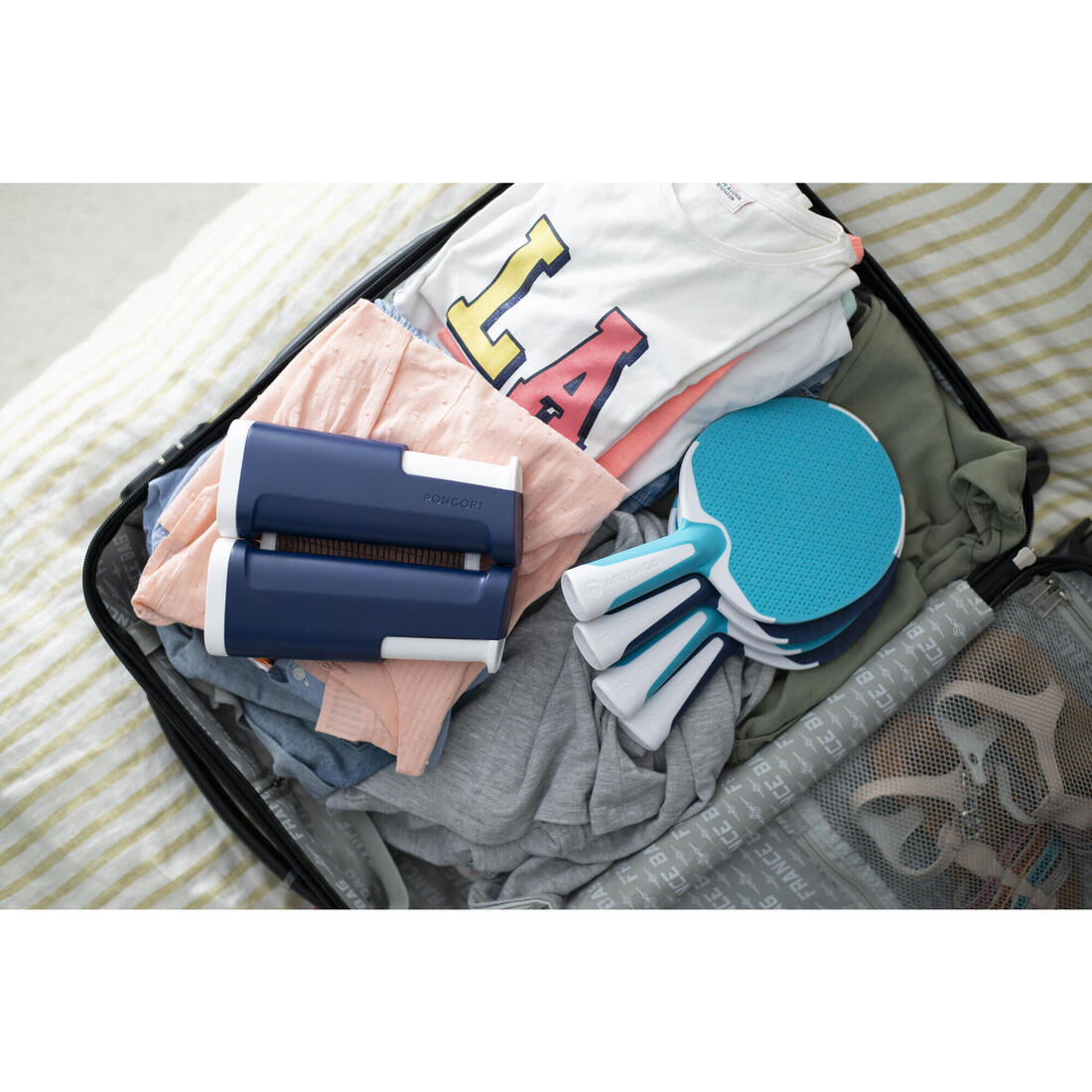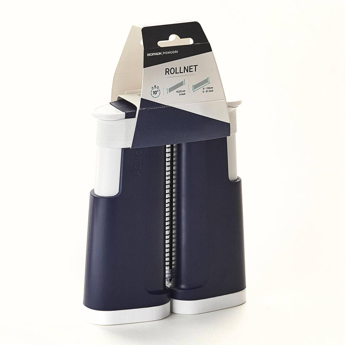La red de ping pong enrollable (altura: 15 cm) se puede instalar sobe una mesa de una anchura máxima de 1,7 m.